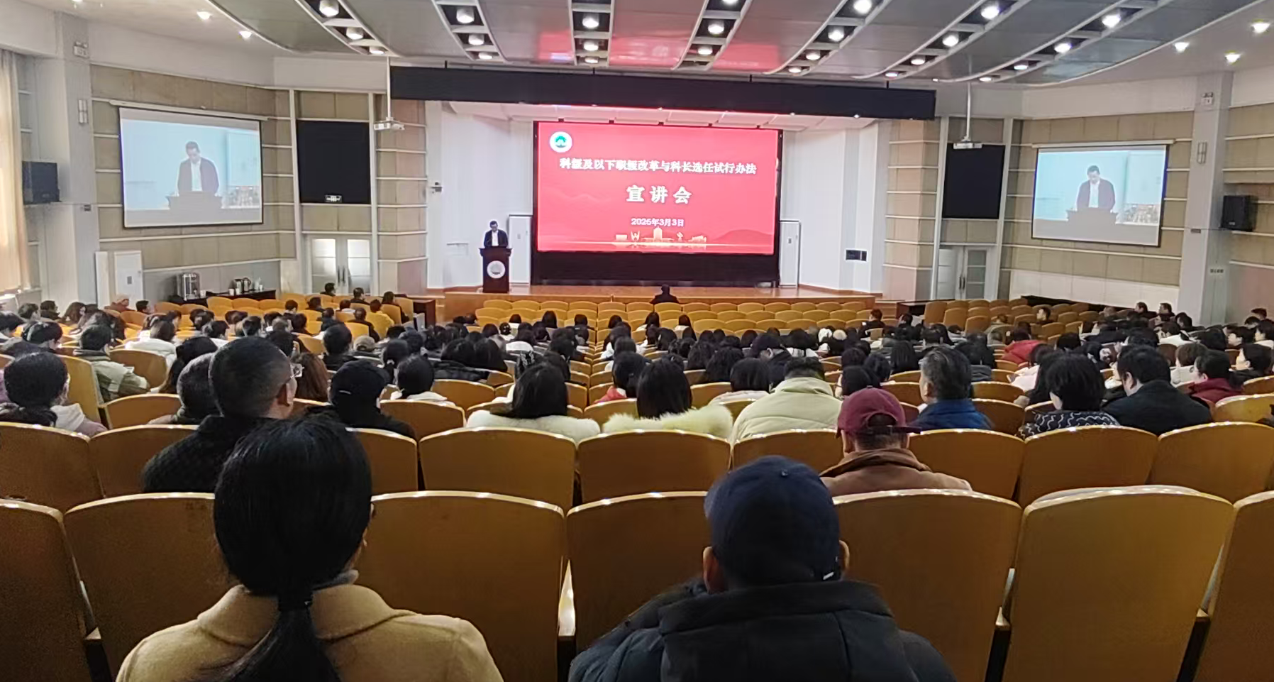 3月3日下午,学校在求实报告厅召开科级及以下职级改革与科长选任工作宣讲会,武汉校区线上同步参会。全校科级及以下管理人员参会,党委副书记、副校长吕一兵出席会议并讲话,会议由人力资源部部长杨文星主持,党委组织部负责人应邀出席会议。